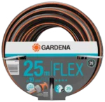 GARDENA Comfort FLEX შლანგი 19 მმ (3/4″) დიამეტრით და 25 მ სიგრძით შესანიშნავია თქვენი მცენარეების მორწყვისა და წმენდის სამუშაოებისთვის. მისი მაღალი ხარისხის სტრუქტურა უზრუნველყოფს სტაბილურობას, მოქნილობას და თითქმის გამორიცხავს გადახლართვასა და დაკვანძვას.
