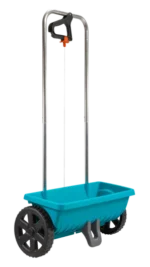 GARDENA Spreader L საშუალებას გაძლევთ მთელი წლის განმავლობაში სიხარულით მოუაროთ ბაღს. გამოიყენეთ იგი, მაგალითად, გაზონის გასანოყიერებლად ზრდის ფაზაში (400 მ²-მდე ფართობზე) ან ზამთარში ყინულისა და თოვლის დროს მარილის ან ხრეშის დასაყრელად.